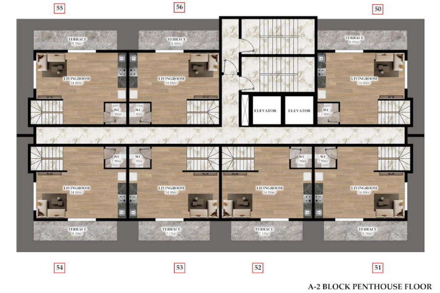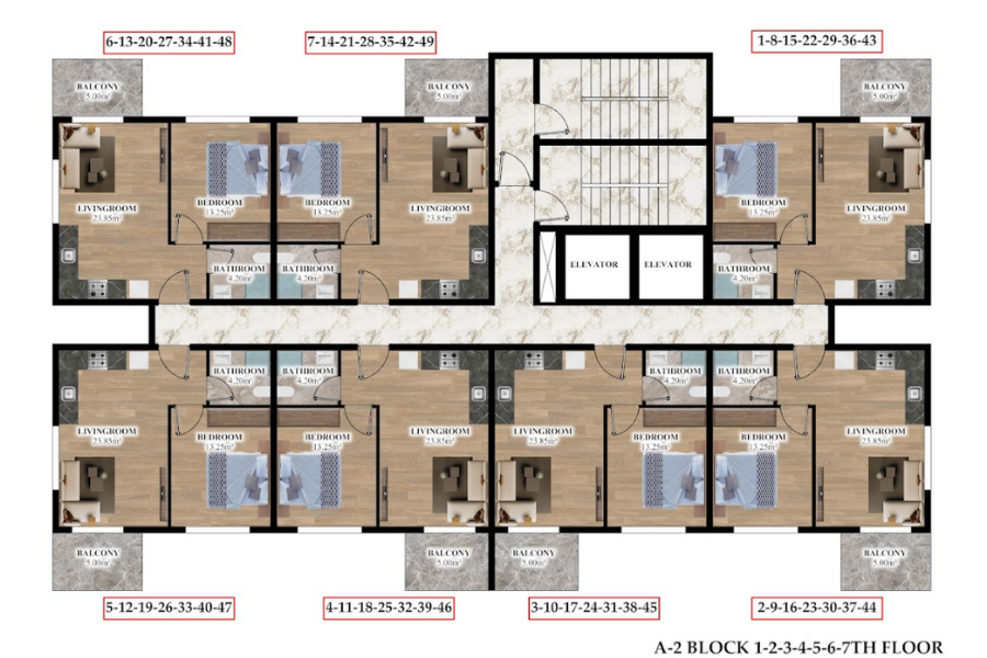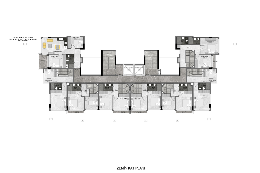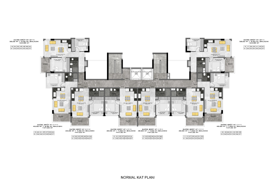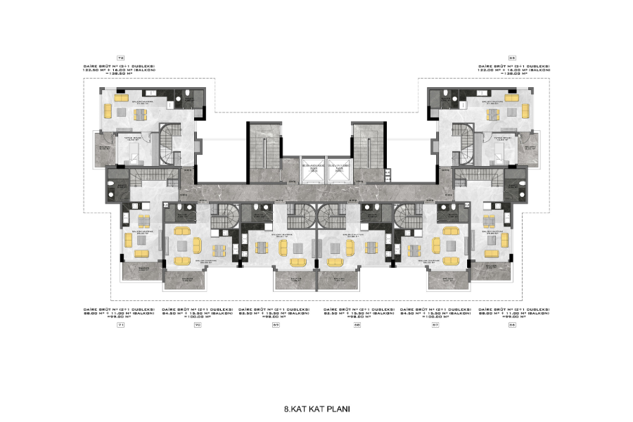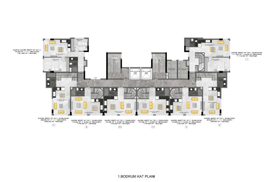 Комнат : Студия, 1+1, 2+1, 3+1, 4+1,