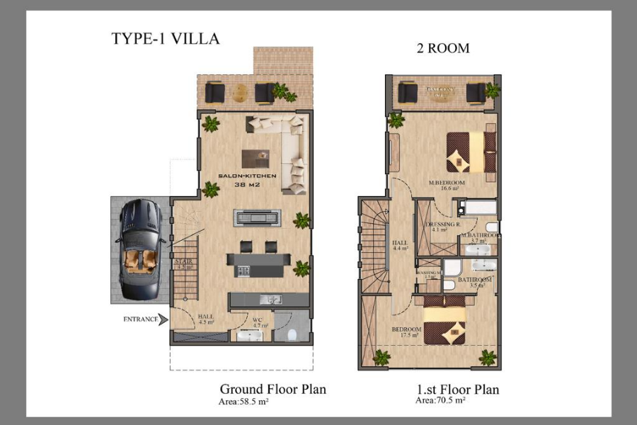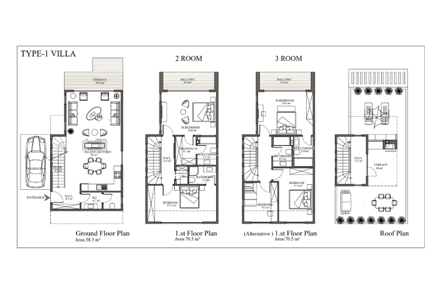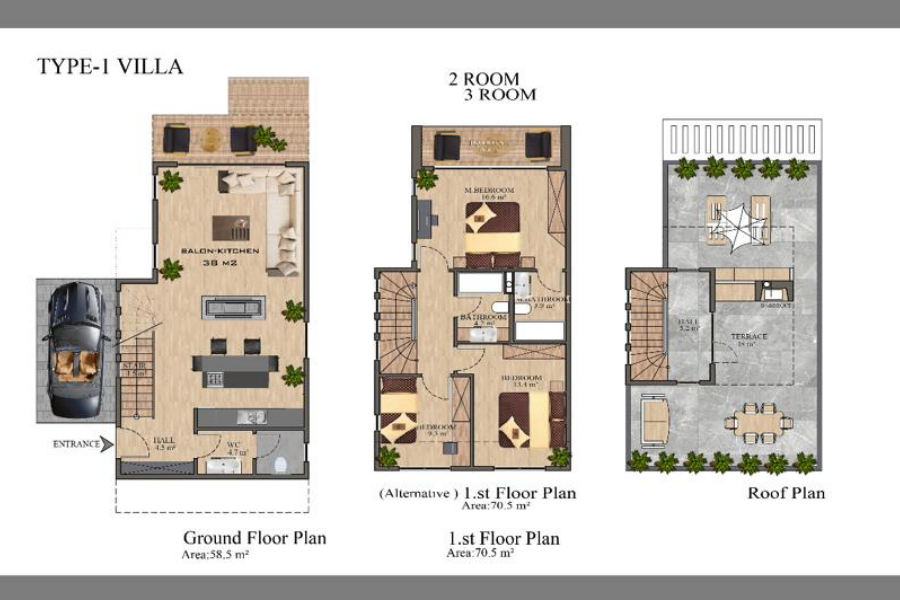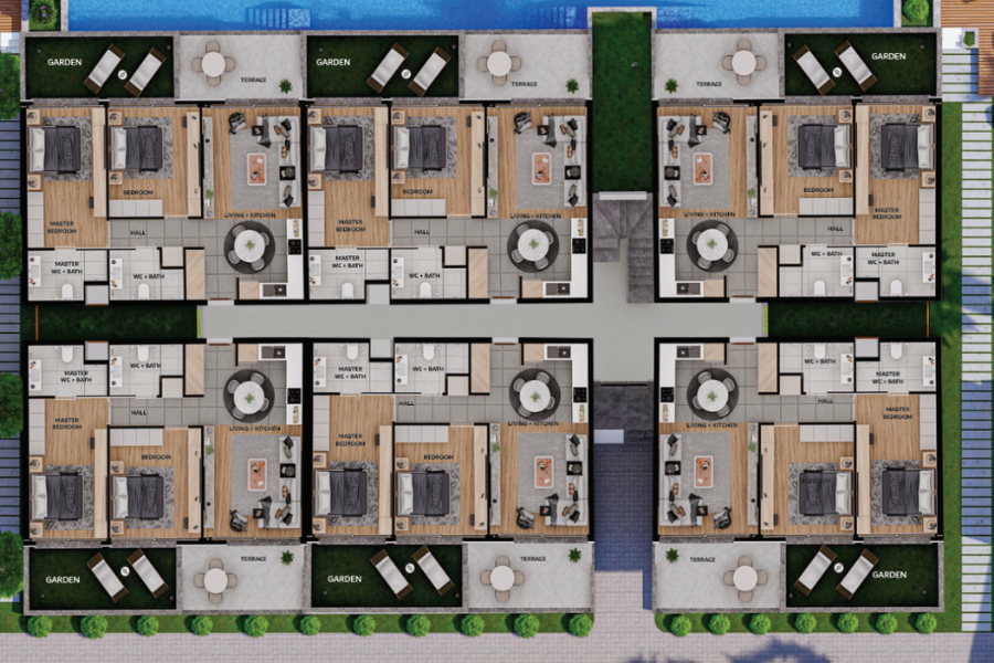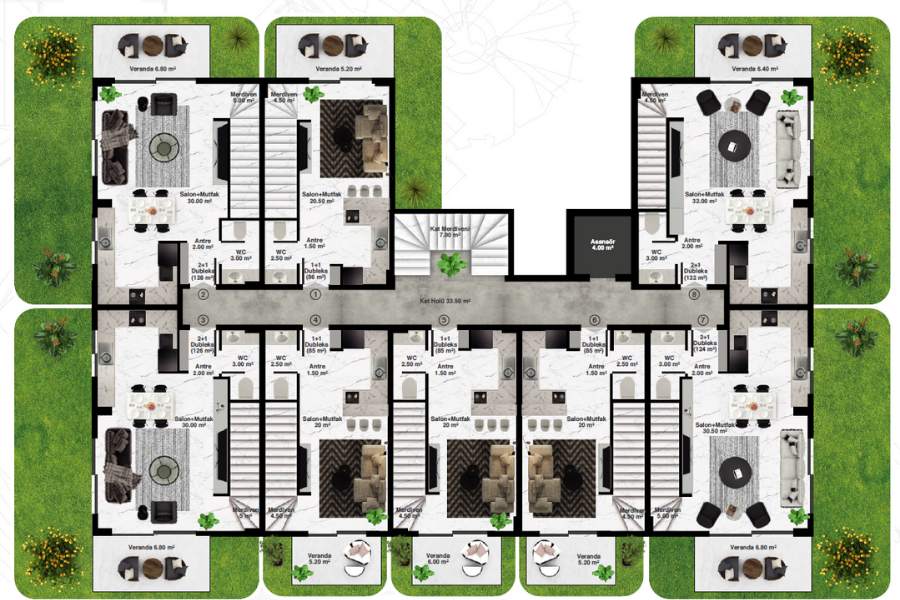 Комнат : Студия, 1+1, 2+1, 3+1, 4+1,